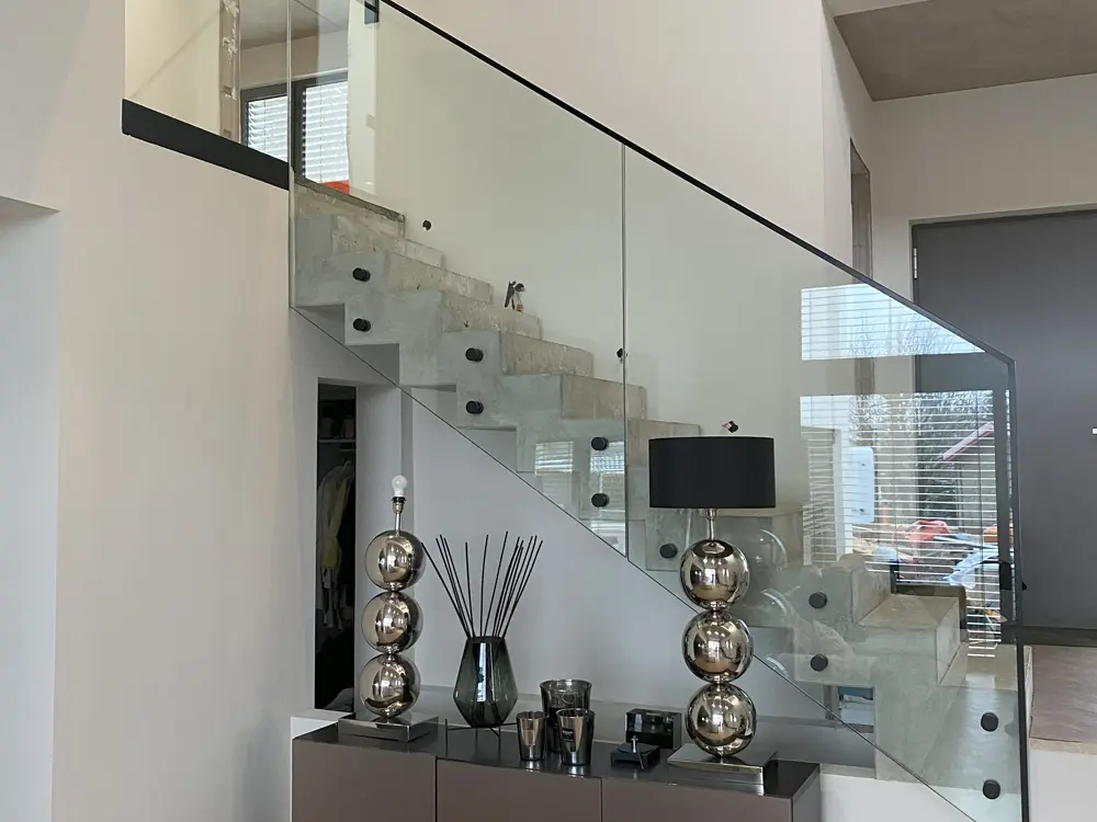 Moderne Glas-Treppengeländer schaffen ein beeindruckendes Highlight in Ihrem Zuhause. Sie kombinieren Funktionalität mit einem minimalistischen, stilvollen Design. Die Klarheit und Transparenz des Glases lässt Ihre Treppe zu einem architektonischen Meisterwerk werden, während gleichzeitig ein sicherer Halt gewährleistet wird. Glas-Treppengeländer sind besonders beliebt in offenen Wohnräumen und sorgen dafür, dass Licht ungehindert durch den Raum fließen kann. Je nach Wunsch können diese Geländer mit verschiedenen Halterungssystemen, wie Punkthaltern oder Profilen, ausgestattet werden, um eine individuelle Optik zu erzielen. So schaffen Sie einen perfekten Mix aus Ästhetik und Funktionalität.