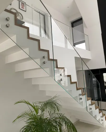 Unsere Glas-Treppengeländer kombinieren modernes Design mit hoher Funktionalität und Sicherheit. Ideal für Innen- und Außenbereiche, passen sich unsere Geländer nahtlos in jede architektonische Umgebung ein und schaffen ein elegantes, offenes Raumgefühl. Ob minimalistische Akzente oder auffällige Designlösungen – wir bieten flexible und maßgeschneiderte Lösungen für Ihr Projekt.