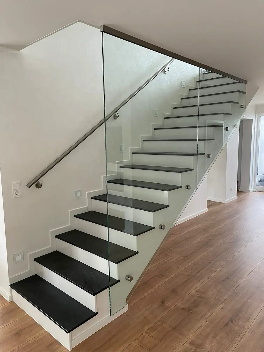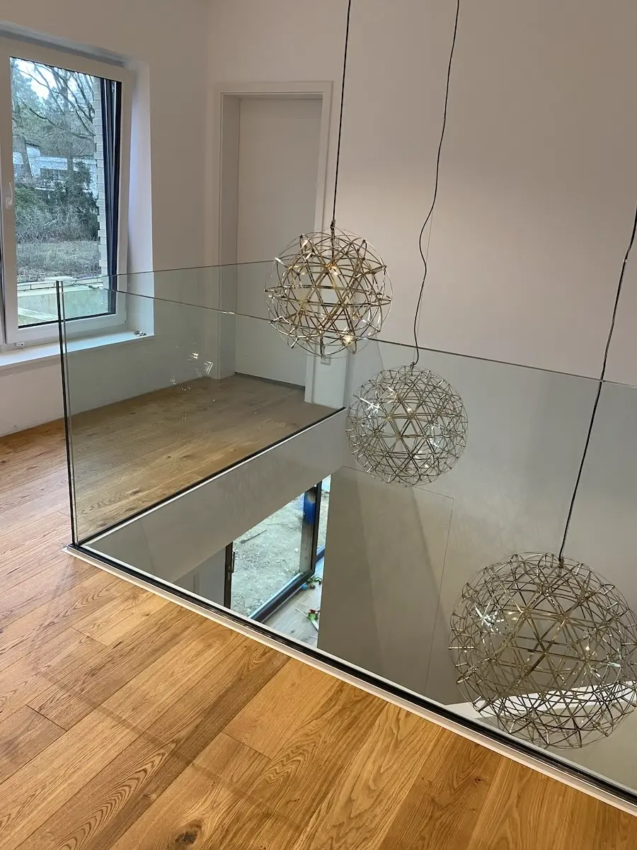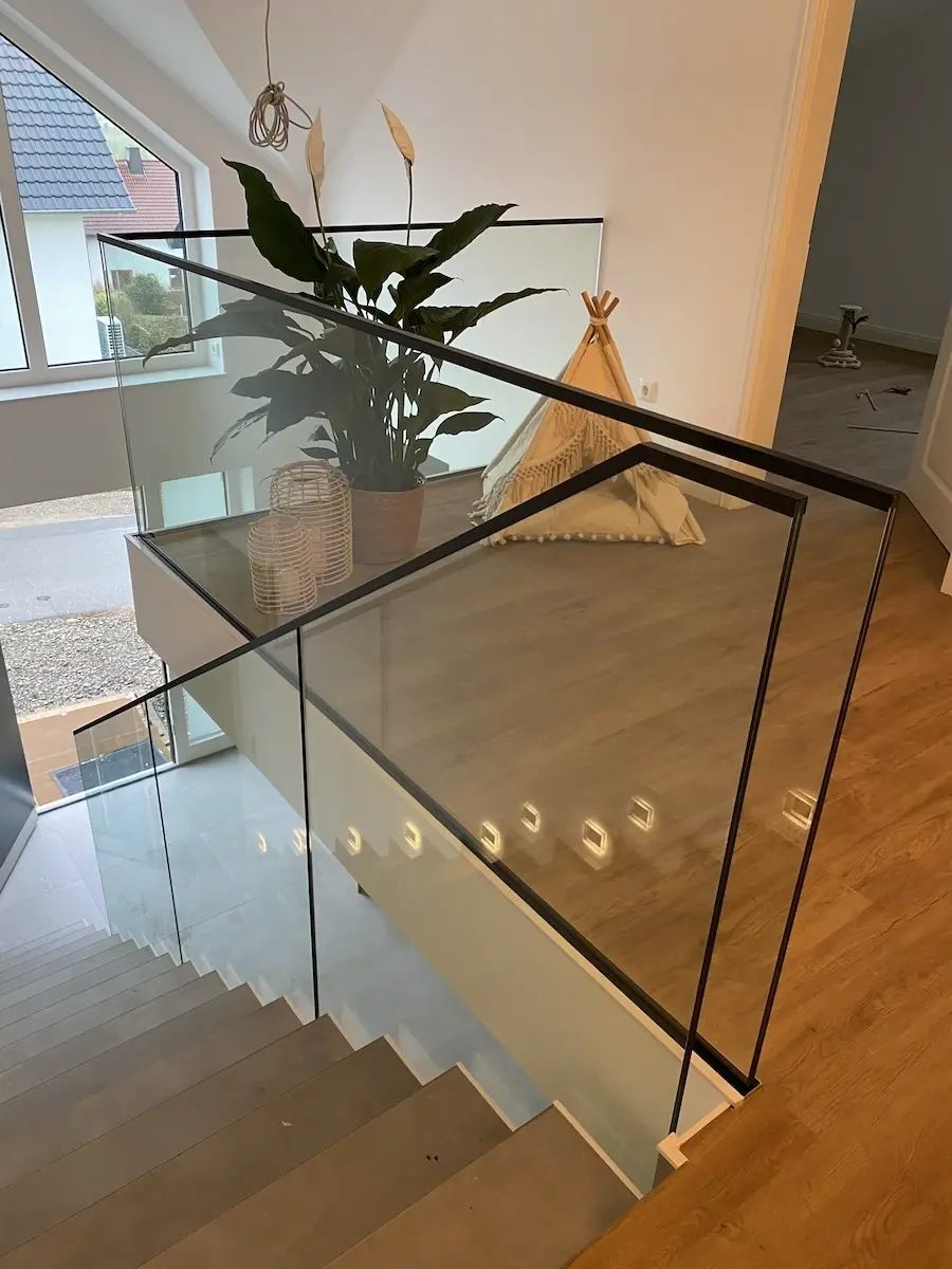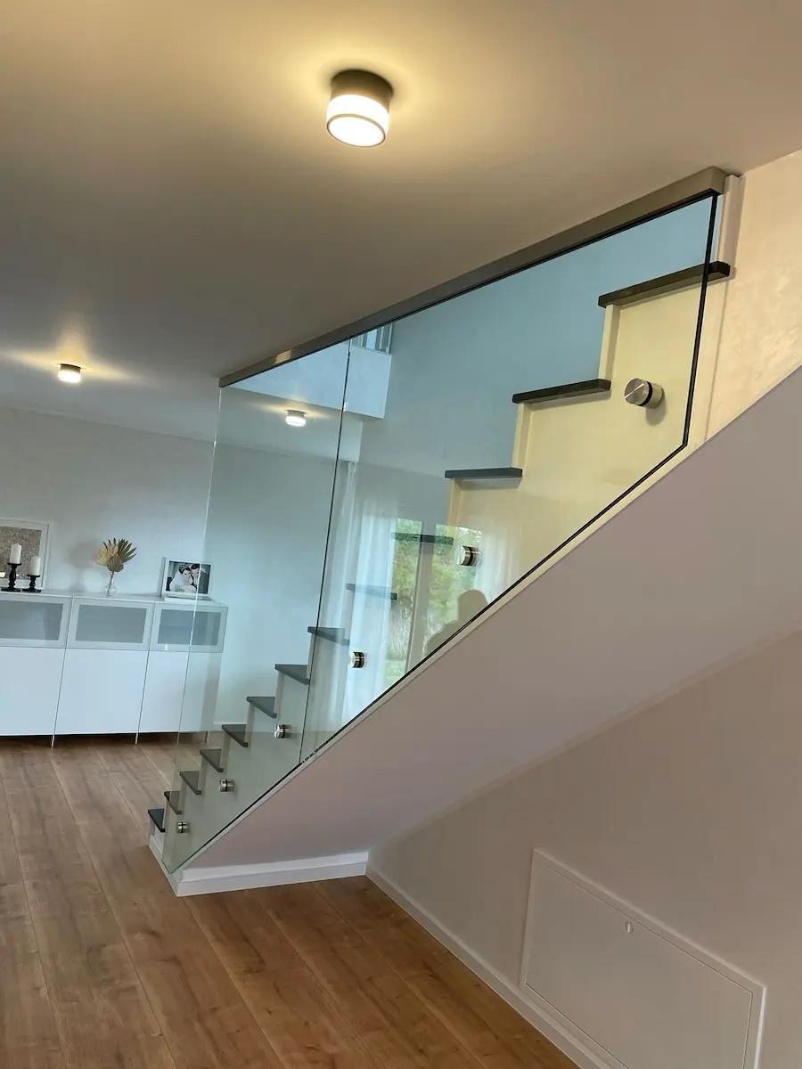 Ein Treppengeländer aus Glas verleiht jedem Treppenhaus eine moderne und elegante Note. Es sorgt nicht nur für die notwendige Sicherheit, sondern wird auch zu einem echten Design-Highlight. Wir fertigen Treppengeländer für jede Treppenform, egal ob geradläufig, gewendelt oder mit Podest. Dabei verwenden wir ausschließlich hochwertiges Verbundsicherheitsglas (VSG) und kombinieren es auf Wunsch mit Handläufen aus Edelstahl oder Holz. So entsteht eine harmonische Verbindung von Funktionalität und Ästhetik, die dein Zuhause aufwertet.
