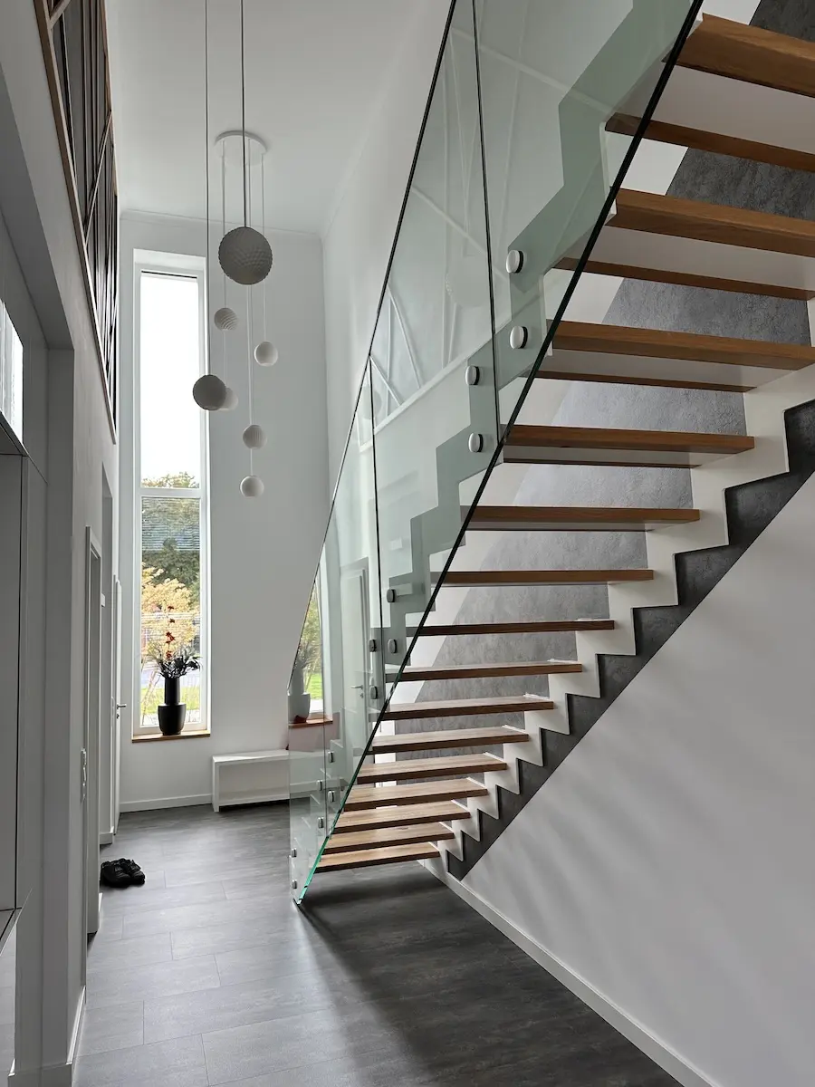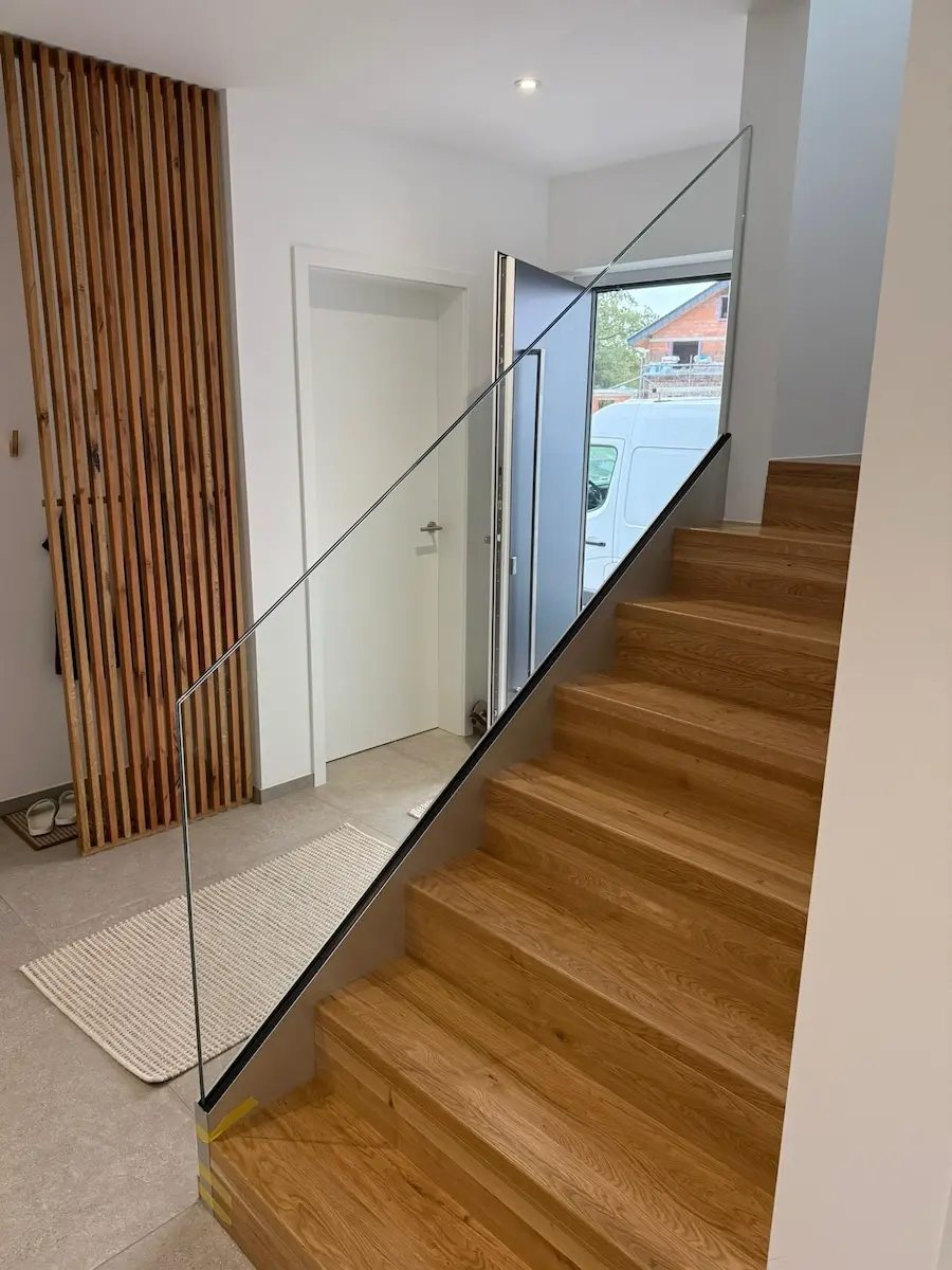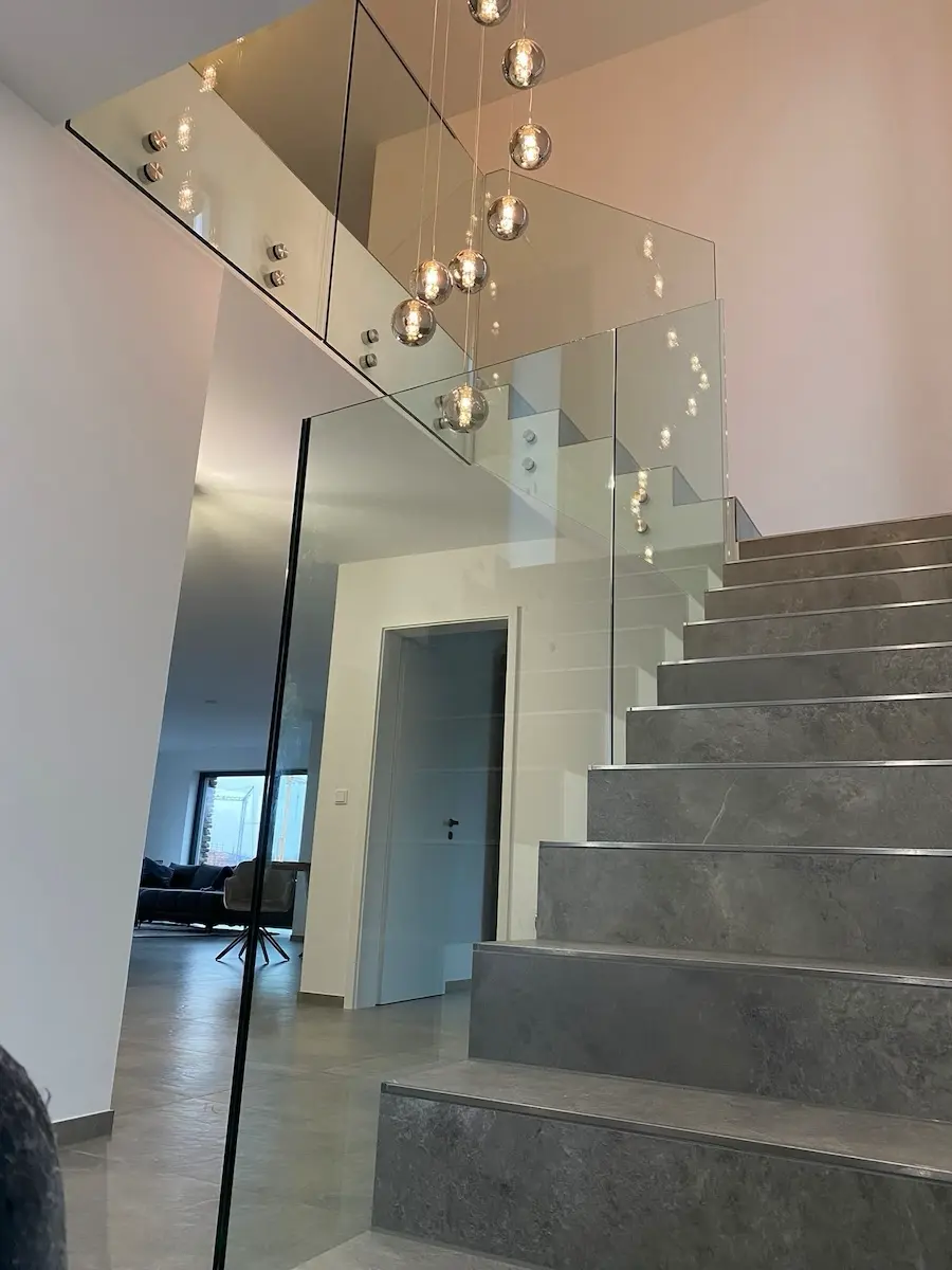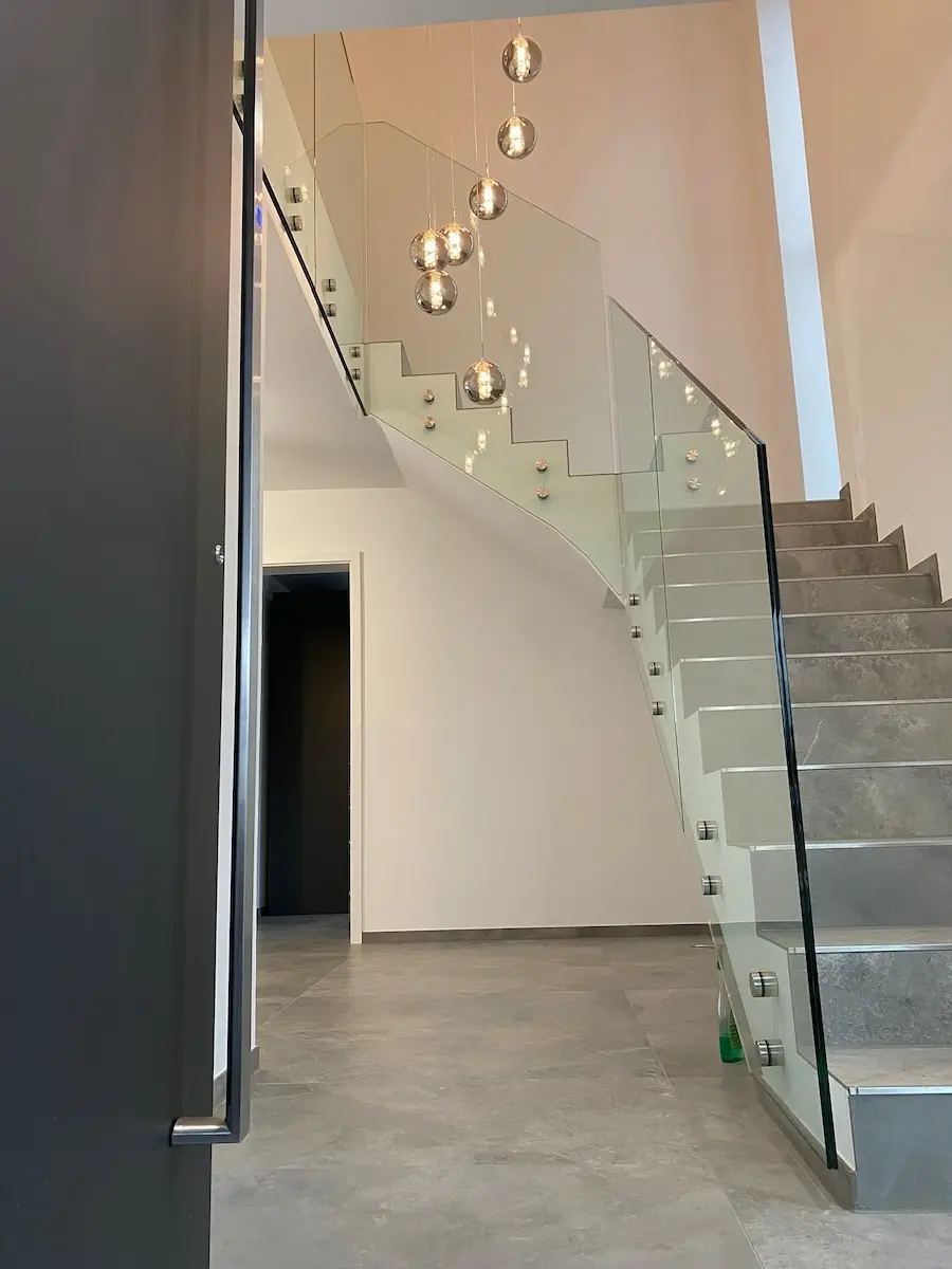 Ein Treppengeländer aus Glas verleiht jedem Treppenhaus eine moderne und elegante Note. Es sorgt nicht nur für die notwendige Sicherheit, sondern wird auch zu einem echten Design-Highlight. Wir fertigen Treppengeländer für jede Treppenform, egal ob geradläufig, gewendelt oder mit Podest. Dabei verwenden wir ausschließlich hochwertiges Verbundsicherheitsglas (VSG) und kombinieren es auf Wunsch mit Handläufen aus Edelstahl oder Holz. So entsteht eine harmonische Verbindung von Funktionalität und Ästhetik, die dein Zuhause aufwertet.