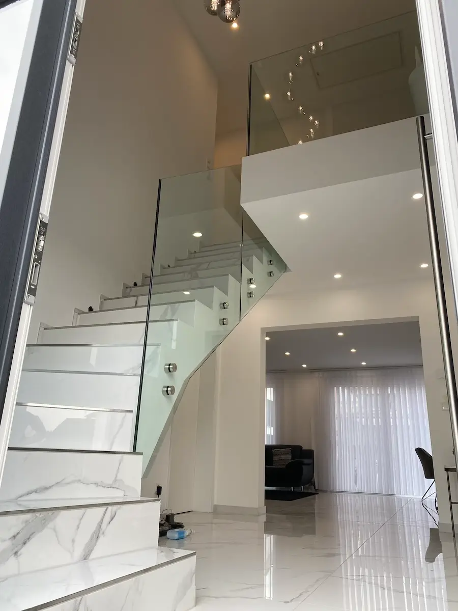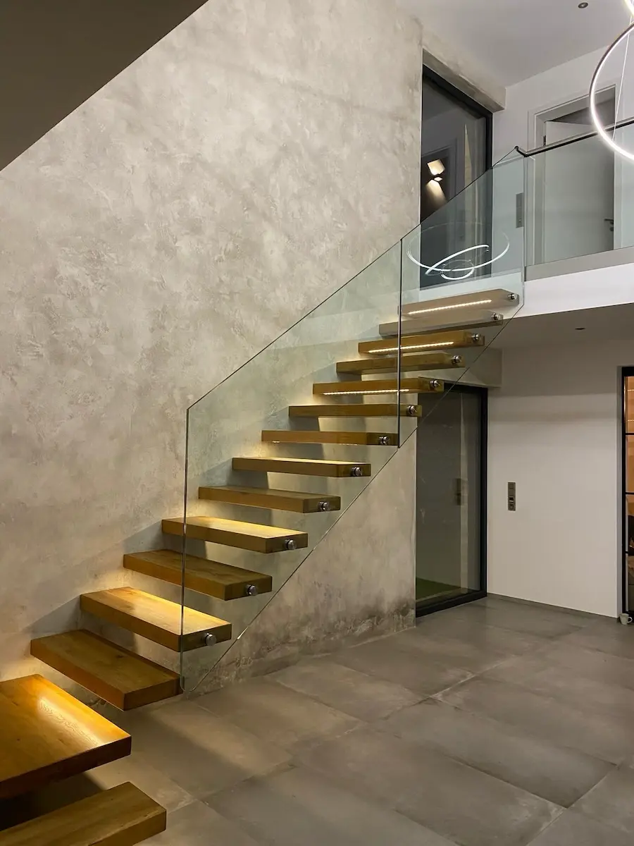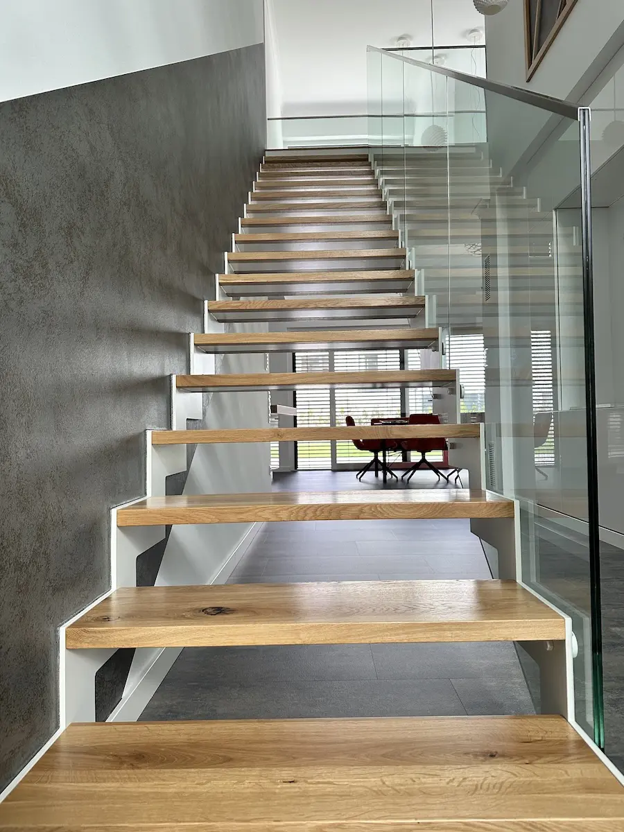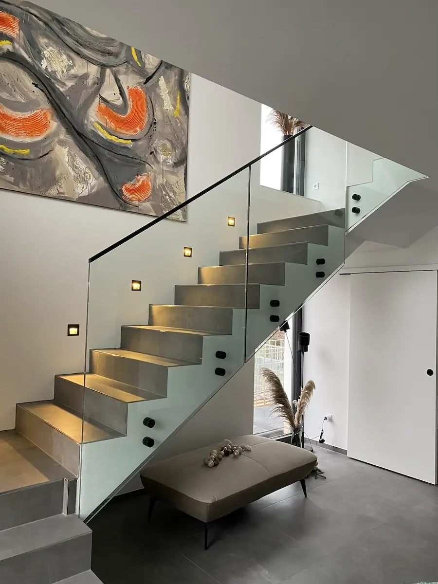 Ein Treppengeländer aus Glas verleiht jedem Treppenhaus eine moderne und elegante Note. Es sorgt nicht nur für die notwendige Sicherheit, sondern wird auch zu einem echten Design-Highlight. Wir fertigen Treppengeländer für jede Treppenform, egal ob geradläufig, gewendelt oder mit Podest. Dabei verwenden wir ausschließlich hochwertiges Verbundsicherheitsglas (VSG) und kombinieren es auf Wunsch mit Handläufen aus Edelstahl oder Holz. So entsteht eine harmonische Verbindung von Funktionalität und Ästhetik, die dein Zuhause aufwertet.