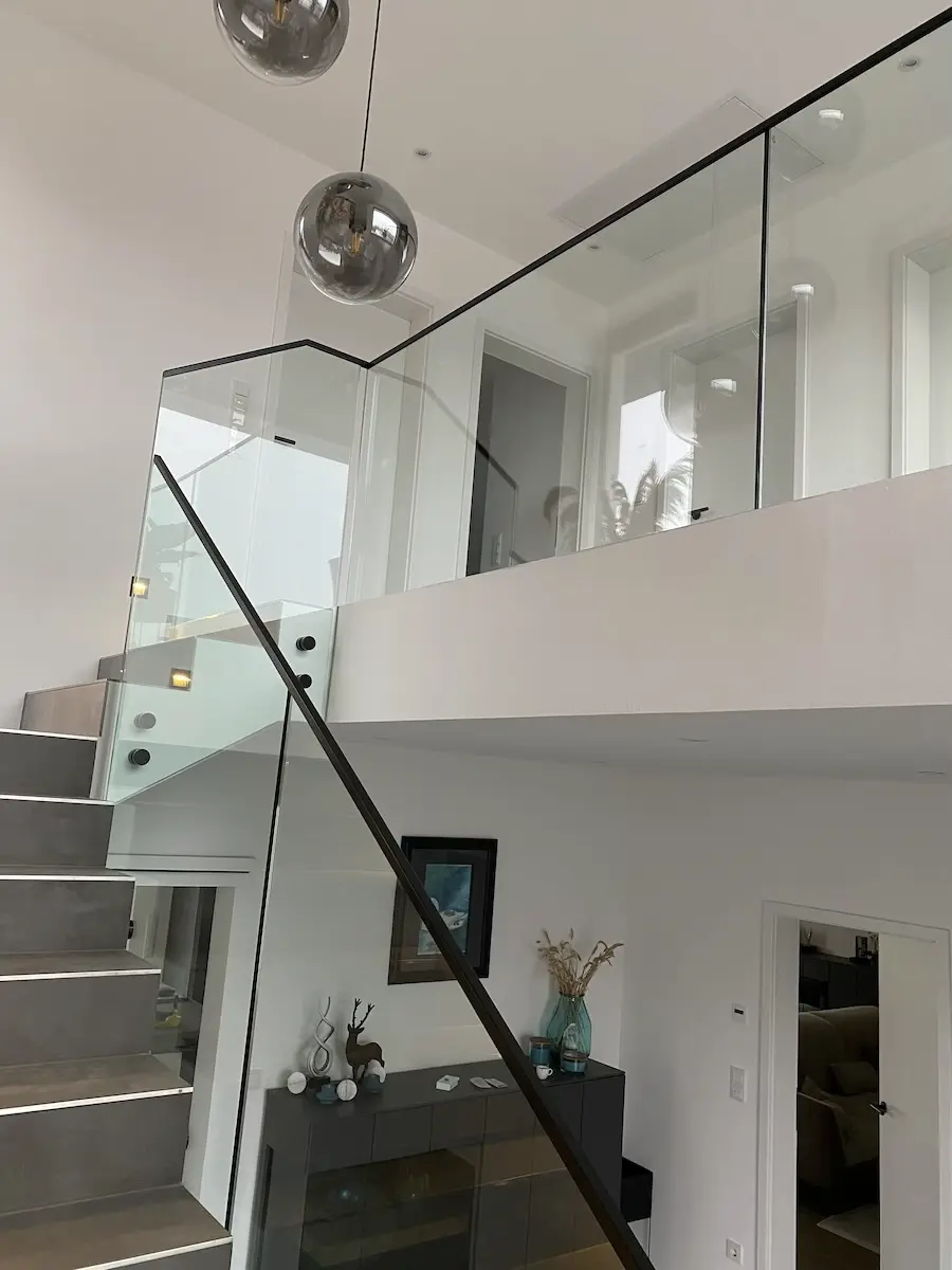 Ein Glasgeländer in Paderborn von AP Glas schafft ein offenes, lichtdurchflutetes Ambiente für dein Zuhause oder dein Unternehmen. Als dein regionaler Experte aus dem benachbarten Delbrück bieten wir dir maßgeschneiderte Lösungen, die perfekt auf deine Wünsche und die architektonischen Gegebenheiten vor Ort abgestimmt sind.