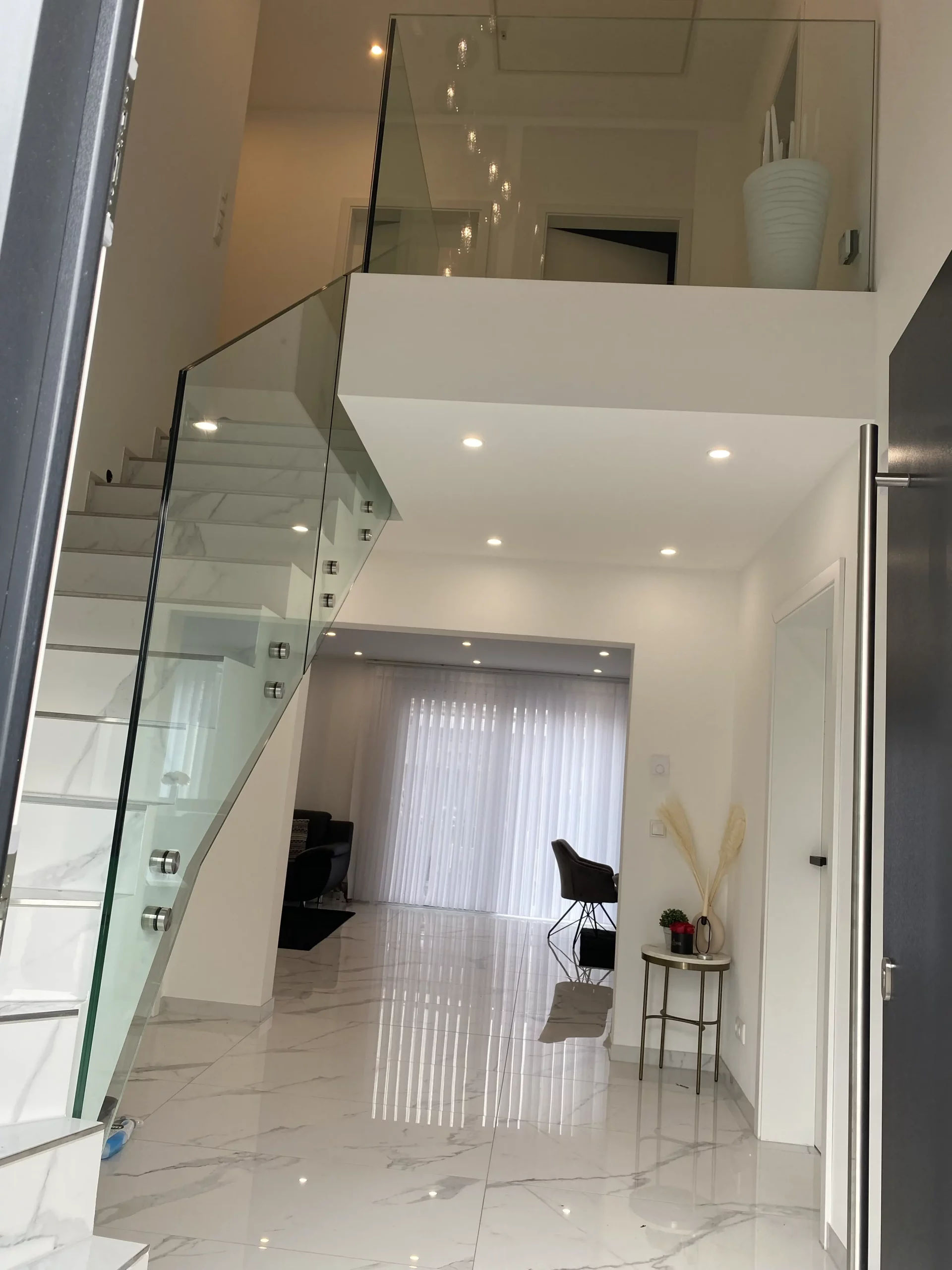 Unsere Glasgeländer verbinden Sicherheit mit Stil. Ob klares oder satiniertes Glas, dezente Punkthalter oder Klemmprofile – wir gestalten dein Geländer individuell passend zu deiner Immobilie in Paderborn.