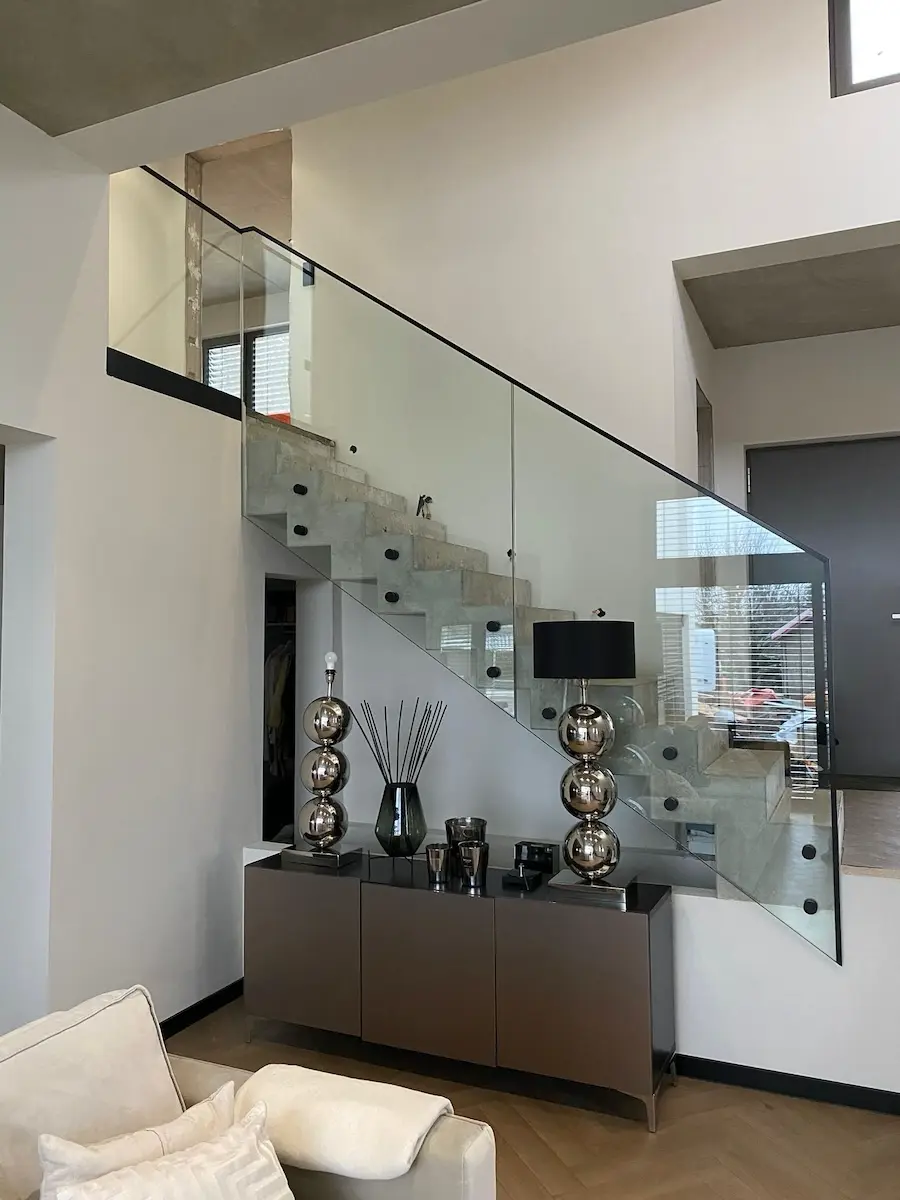 - Maximale Transparenz und offenes Raumgefühl durch rahmenlose Bauweise