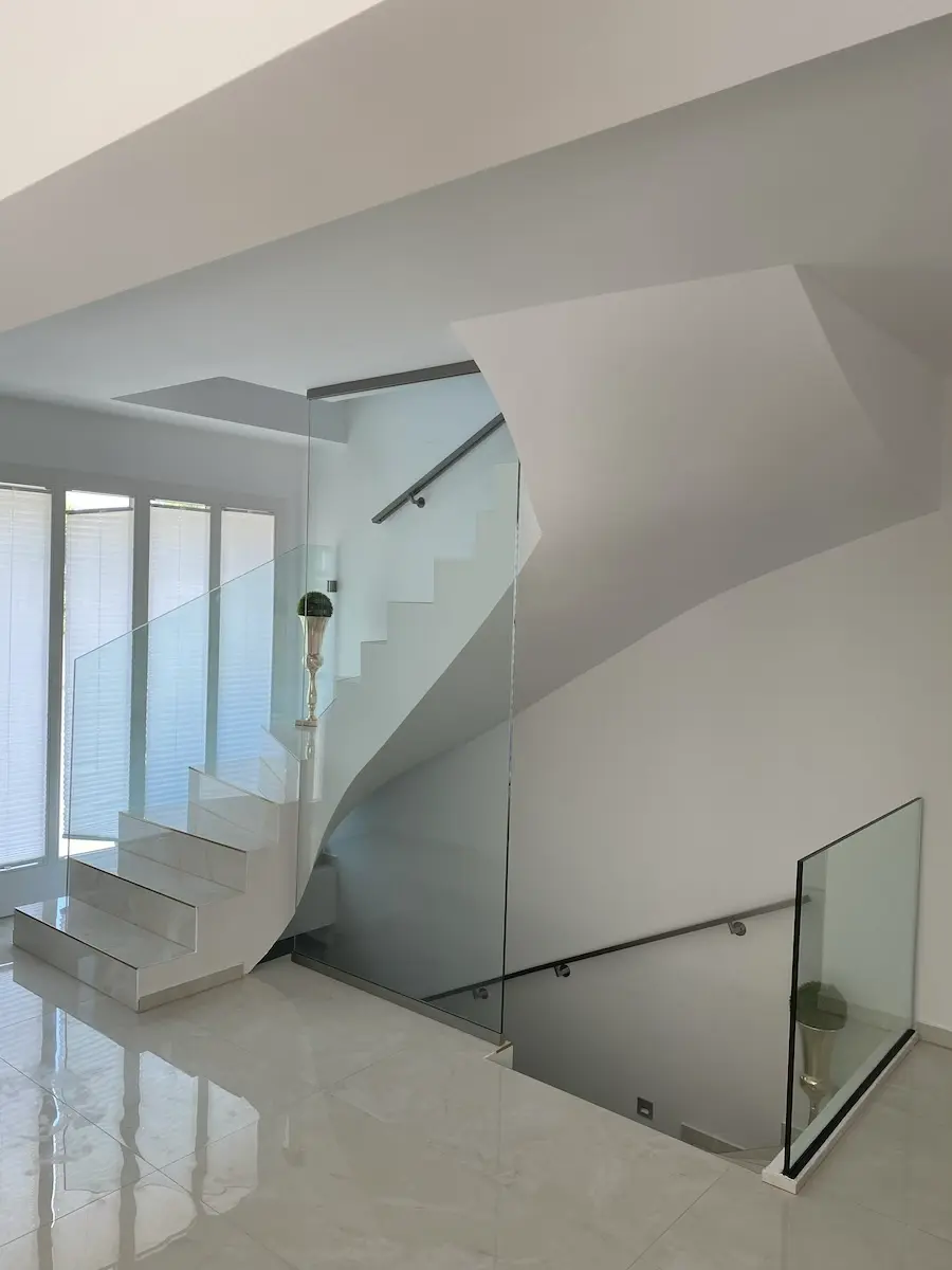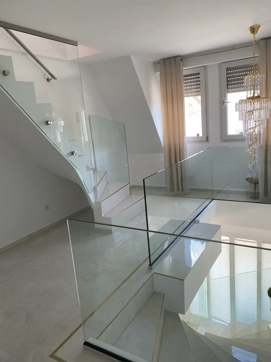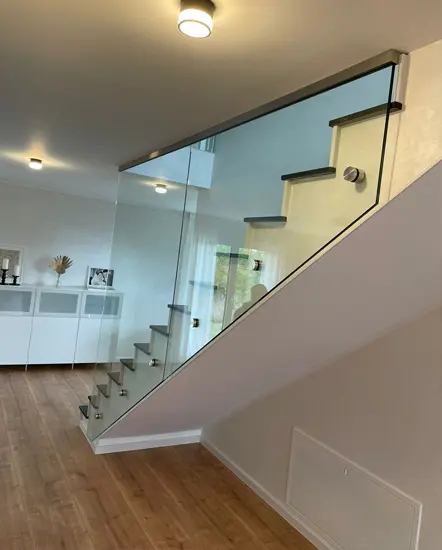 Für Bereiche wie Treppenhäuser, Galerien oder offene Wohnflächen bieten wir besonders robuste Verglasungen aus hochwertigem VSG an. Diese Wände verbinden Sicherheit und Offenheit – und fügen sich harmonisch in moderne Architektur ein.