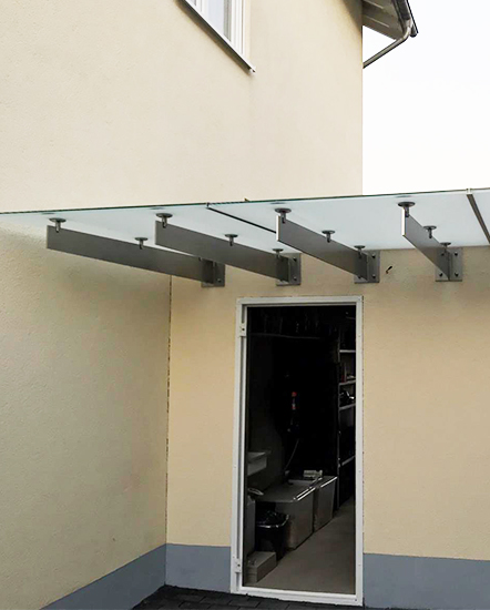 Unsere Vordächer aus Glas bieten optimalen Schutz vor Witterungseinflüssen und verleihen Ihrem Eingangsbereich eine moderne und elegante Optik. Mit ihrer transparenten Ästhetik fügen sie sich nahtlos in jede Architektur ein, ohne den Blick zu verdecken. Ob Regen, Schnee oder direkte Sonneneinstrahlung – unsere Vordächer sorgen dafür, dass Sie und Ihre Gäste stets gut geschützt sind.